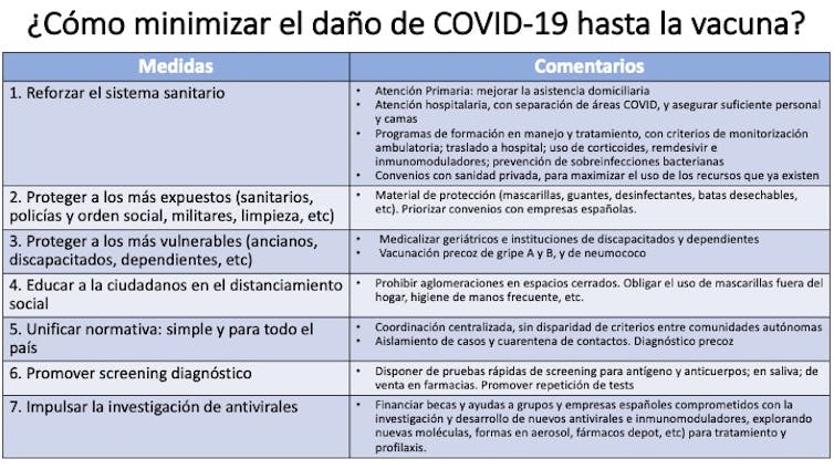Se describen a continuación las medidas que podrían tomarse para hacer frente a la pandemia por SARS-CoV-2 hasta que dispongamos de una vacuna protectora.