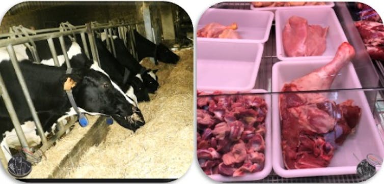 Cuando un animal de abasto tiene en su cuerpo (principalmente en el tracto digestivo o en la piel) bacterias resistentes a los antibióticos, los alimentos obtenidos a partir de él (carne, leche, huevos) se pueden contaminar con estos microorganismos, que también pueden pasar al medio ambiente y contaminar las verduras u otros productos agrícolas que se abonen con estiércol o se rieguen con agua contaminada.