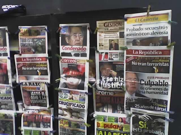 Portadas de periódicos en Perú tras la condena a Fujimori el 8 de abril de 2009. Pedro Rivas Ugaz/Flickr, CC BY